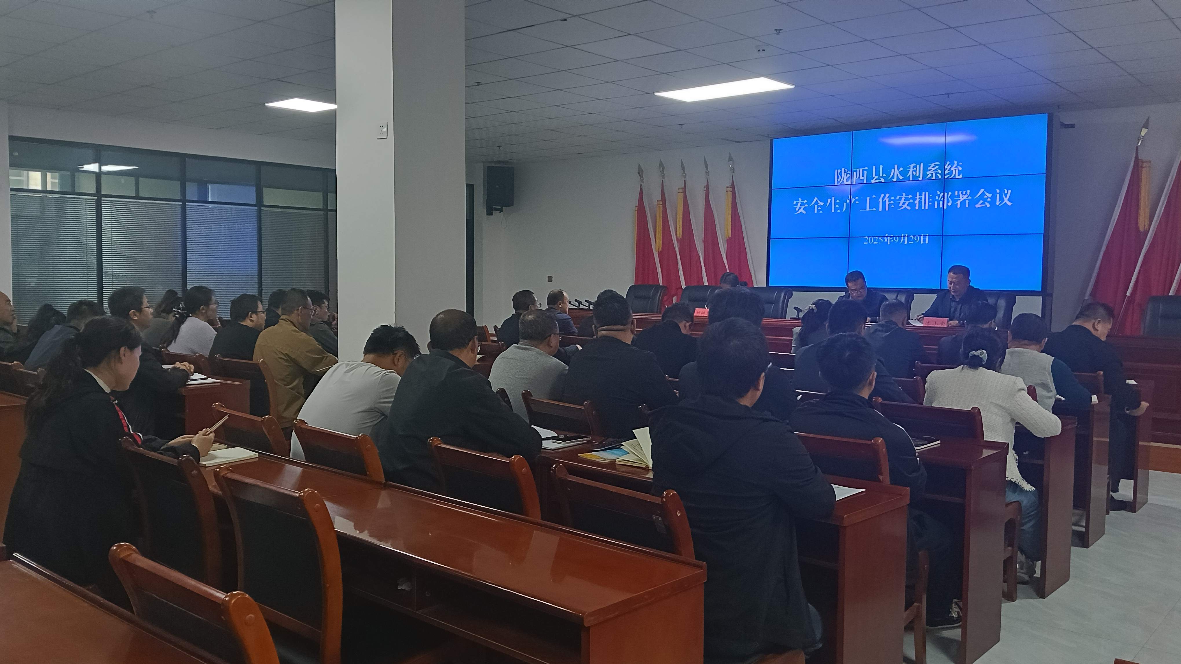 9月29日,县水务局召开全系统安全生产工作安排部署会议,局党组成员、副局长李晖主持会议,在家领导、局属各单位和股室主要负责同志及在建水利项目各参建单位负责同志参加。